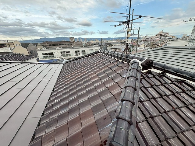 八尾市で雨漏りが発生した瓦屋根の漆喰状態を確認、「三日月」部分は異常はありませんでした