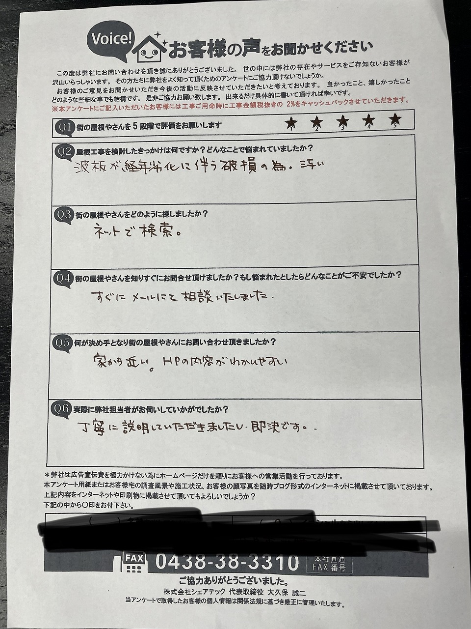 枚方市 リピーターのS様から屋根修繕のお声を頂きました。