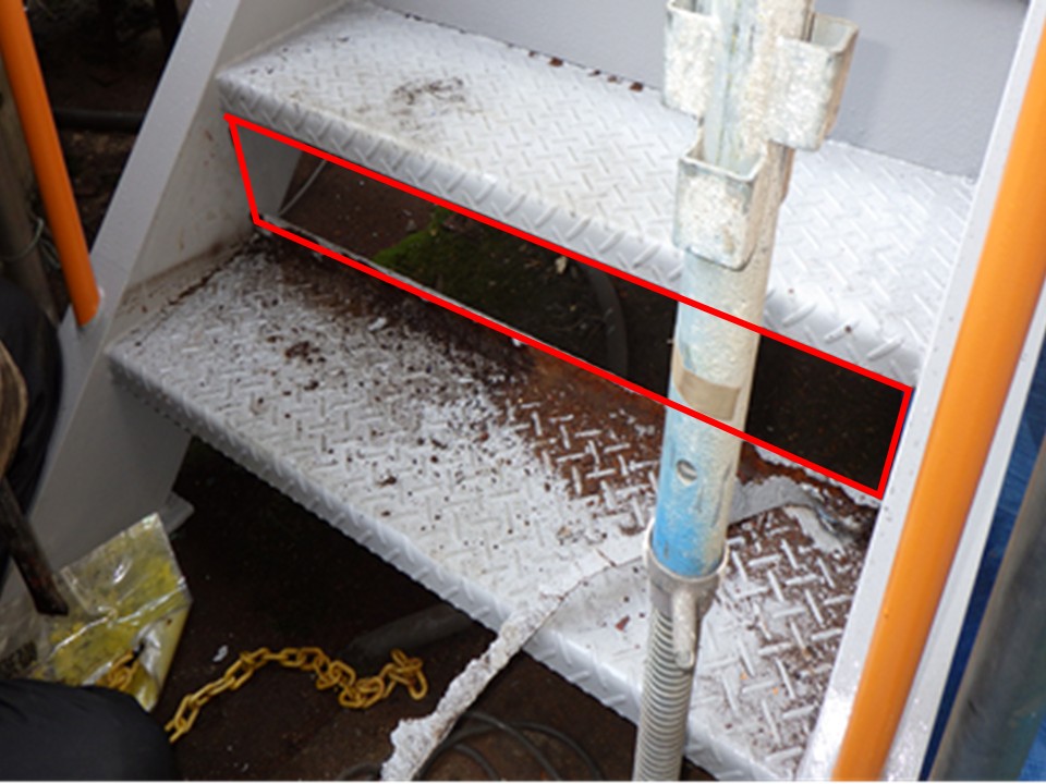 広島市安芸区、工場の鉄骨階段補修工事|腐食した蹴込部分と錆を安全に修復した施工工程