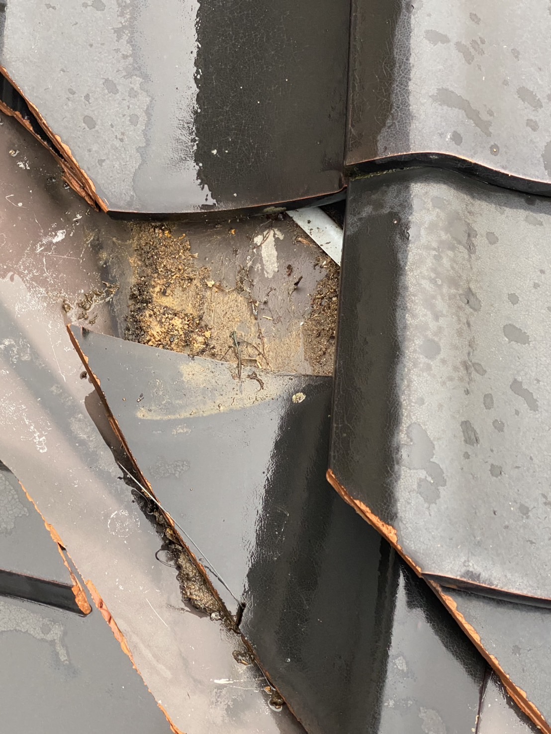 【氷見市】谷板金に亀裂を発見!瓦屋根の谷部分の「谷板金」と呼ばれる金属板を交換