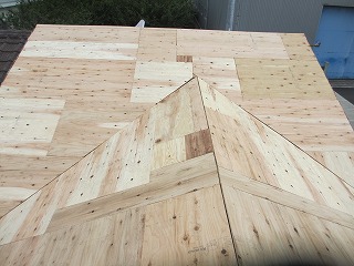 四国中央市で、横葺き板金に葺き替え工事。屋根の下地補強とルーフィング(防水シート)張りを行いました。